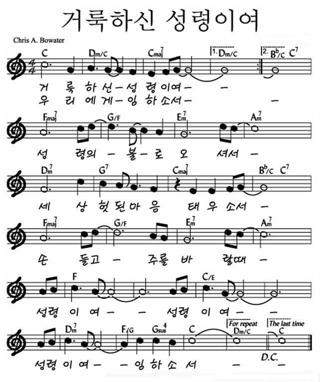거룩하신 성령이여 - 악보,가사,영상 C KEY