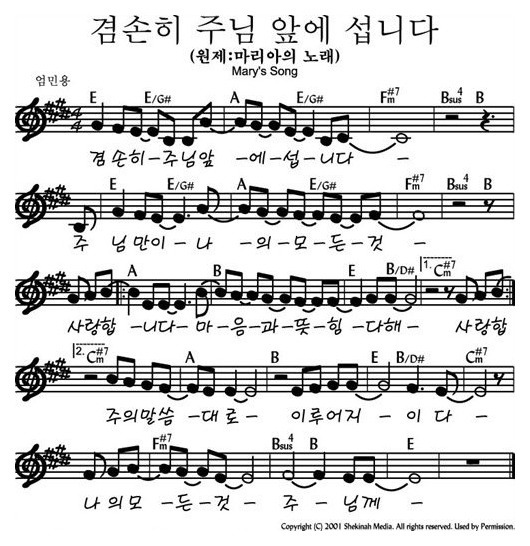 겸손히 주님 앞에 섭니다 (마리아의 노래) - 악보,가사,영상 E KEY