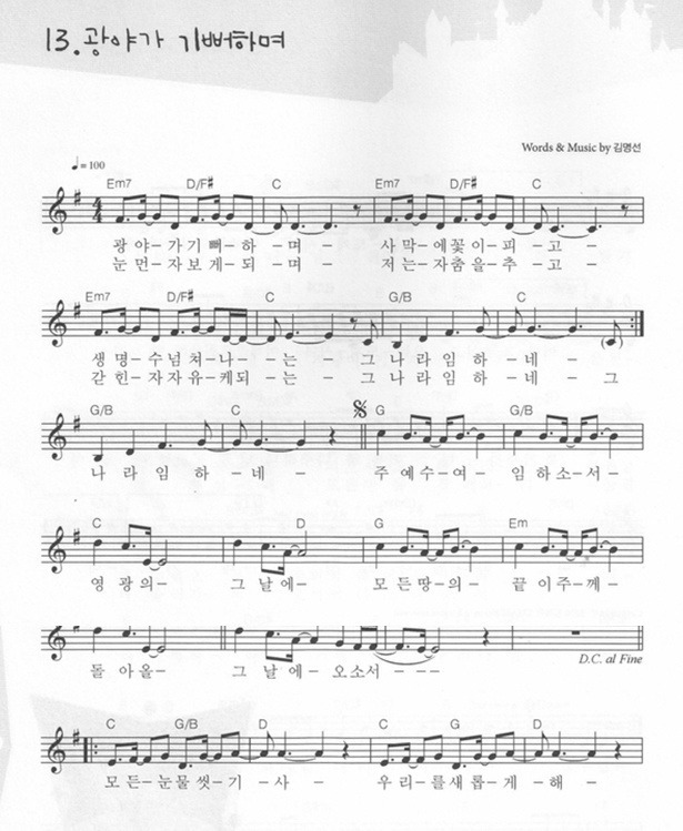 광야가 기뻐하며 - 악보,가사,영상 Em KEY