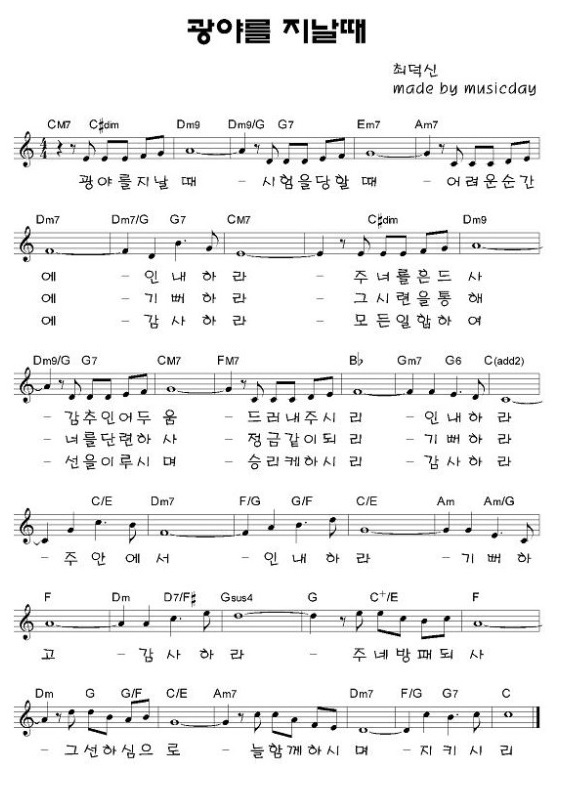광야를 지날 때 - 악보, 영상, 가사 C KEY