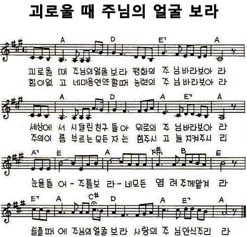괴로울 때 주님의 얼굴 보라 - 악보,가사,영상 A KEY