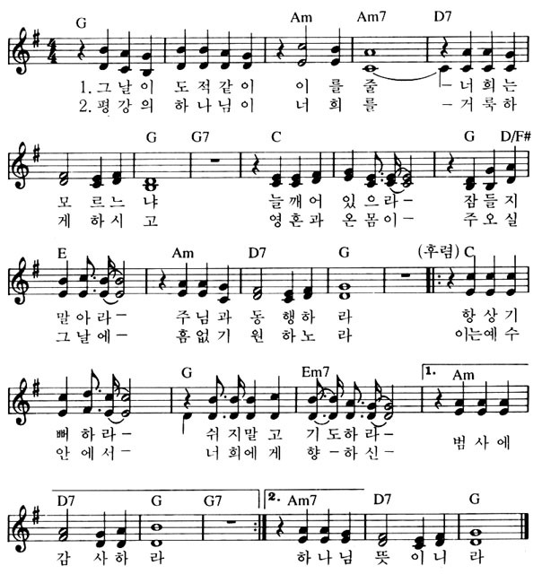 그날이 도적 같이 - 악보,가사,영상 G,A KEY