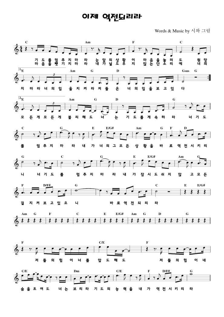 기도를멈추지마라(이제역전되리라)-가사,악보,영상 C KEY