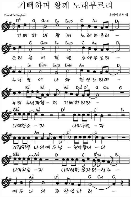 기뻐하며 왕께 노래부르리 - 악보,가사,영상 D KEY