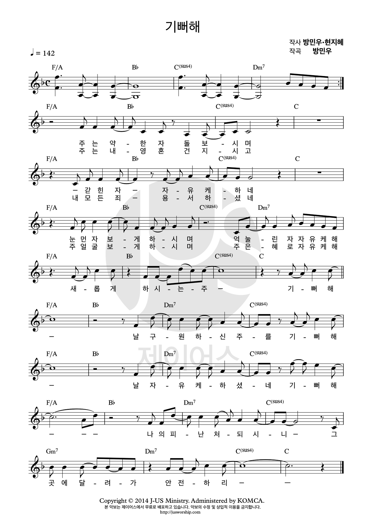 기뻐해(I Rejoice) - 악보,가사,영상 F KEY