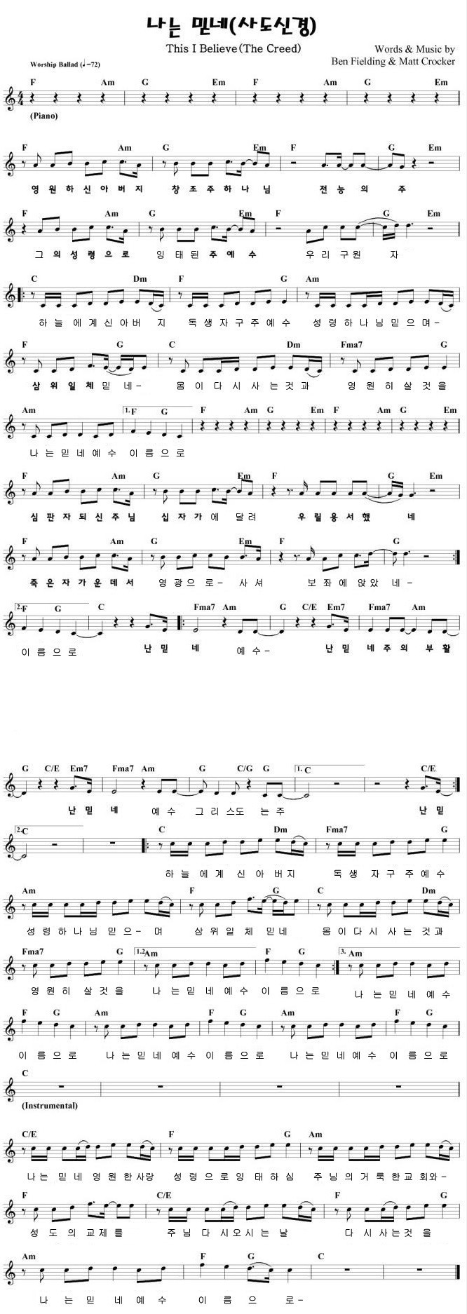 나는믿네 (This I Believe), 사도신경 (The Creed) -악보,가사,영상, C KEY