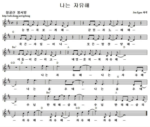 나는 자유해 - 악보,가사,영상 D KEY