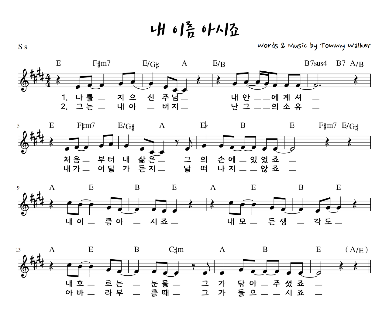 나를 지으신 주님 (내 이름 아시죠) - 악보,가사,영상 D, E, F KEY
