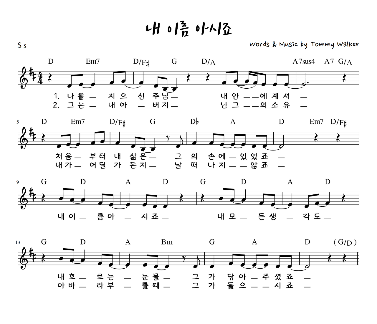 나를 지으신 주님 (내 이름 아시죠) - 악보,가사,영상 D, E, F KEY