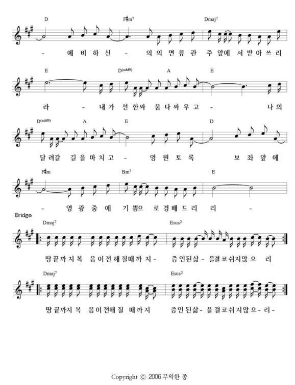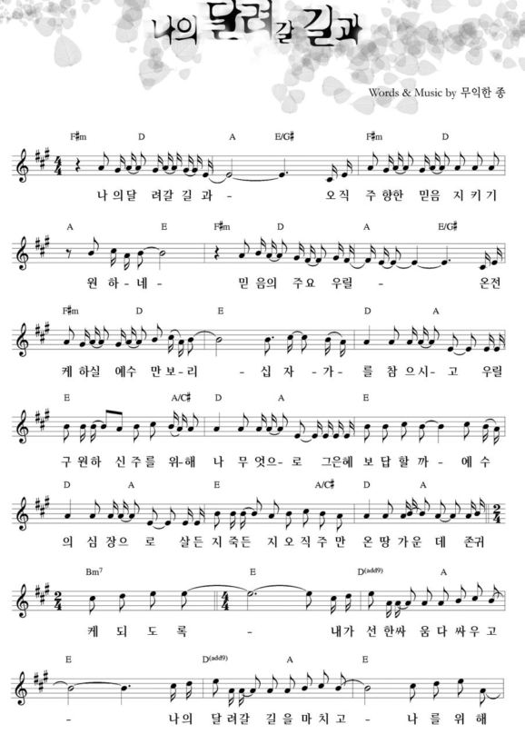 나의 달려갈 길과 - 악보,가사,영상 E KEY