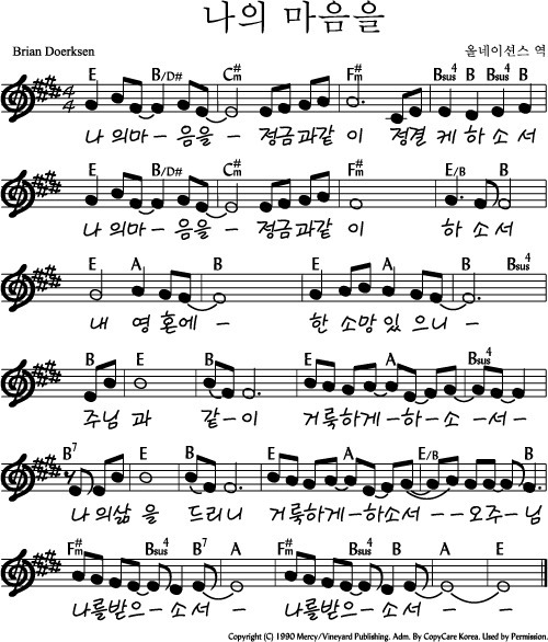 나의 마음을 - 악보,가사,영상 E KEY