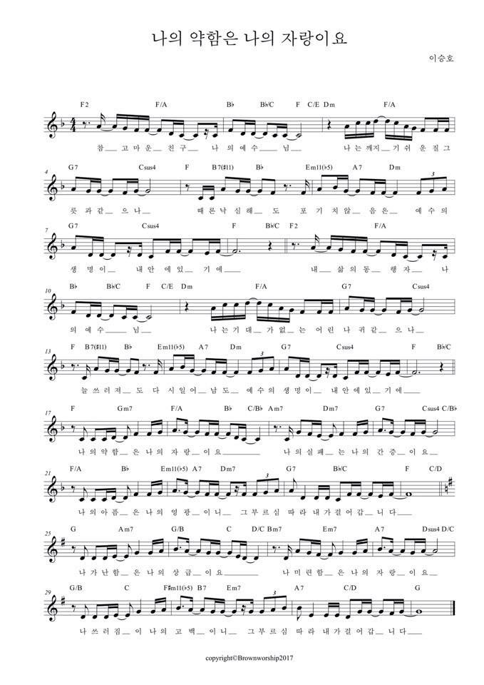 나의 약함은 나의 자랑이요 - 악보,가사,영상 F KEY