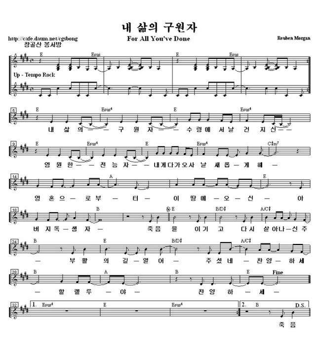 내삶의구원자(For all you've done) - 악보,가사,영상 E KEY