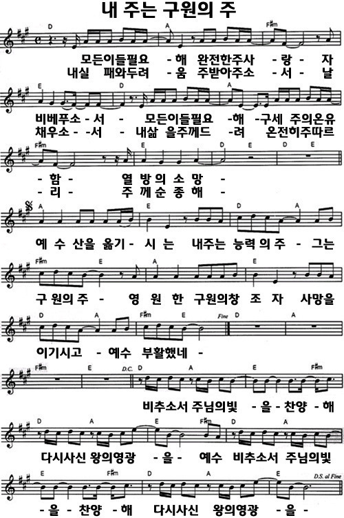 내주는 구원의 주(Mighty to save) - 악보,가사,영상 D KEY