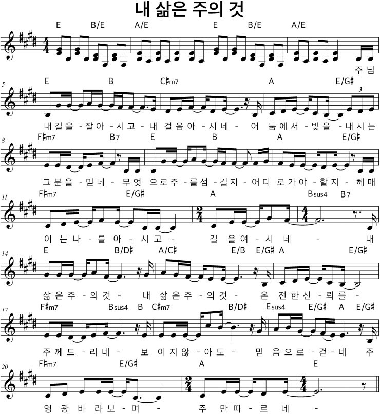 내 삶은 주의 것 - 악보,가사,영상 E KEY