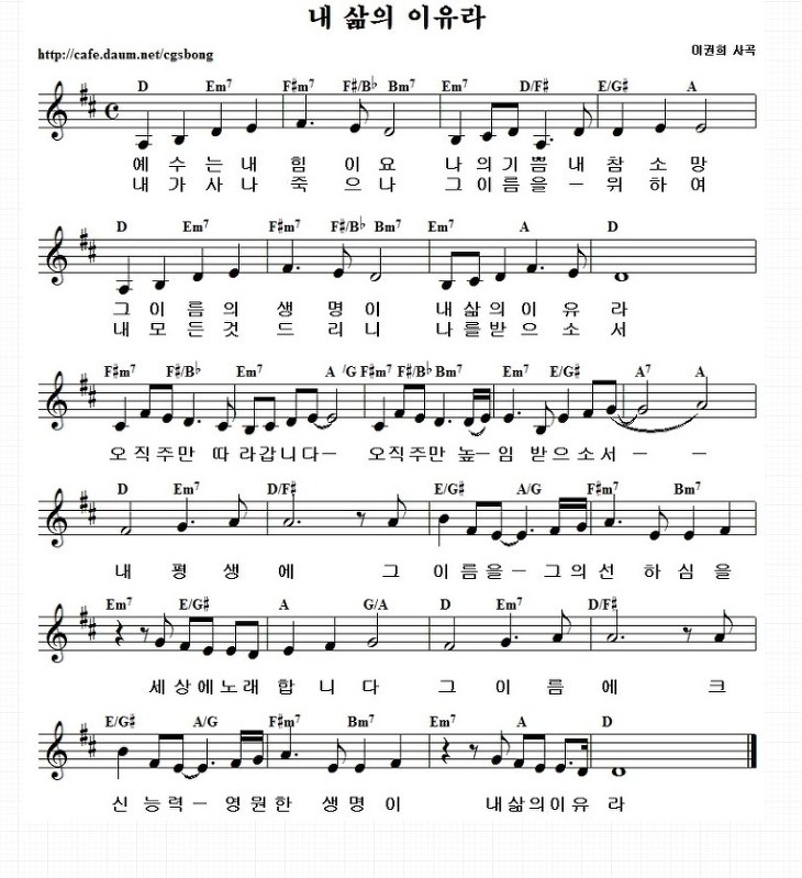 내 삶의 이유라 - 악보,가사,영상 D KEY