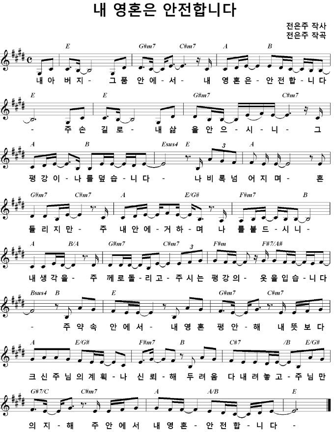 내 영혼은 안전합니다 - 악보,가사,영상 E KEY