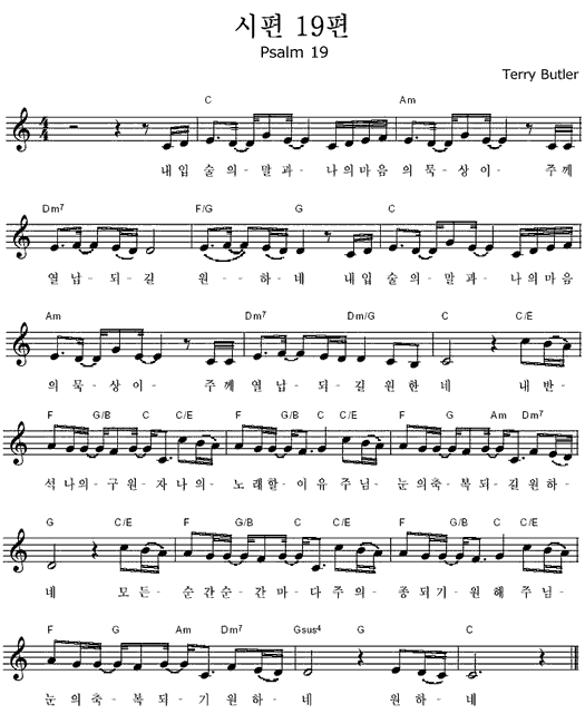 내 입술의 말과 (시편19편) - 악보,가사,영상 C KEY