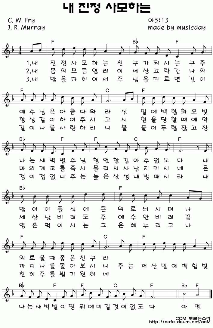 내 진정 사모하는 - 악보,가사,영상 E,F KEY