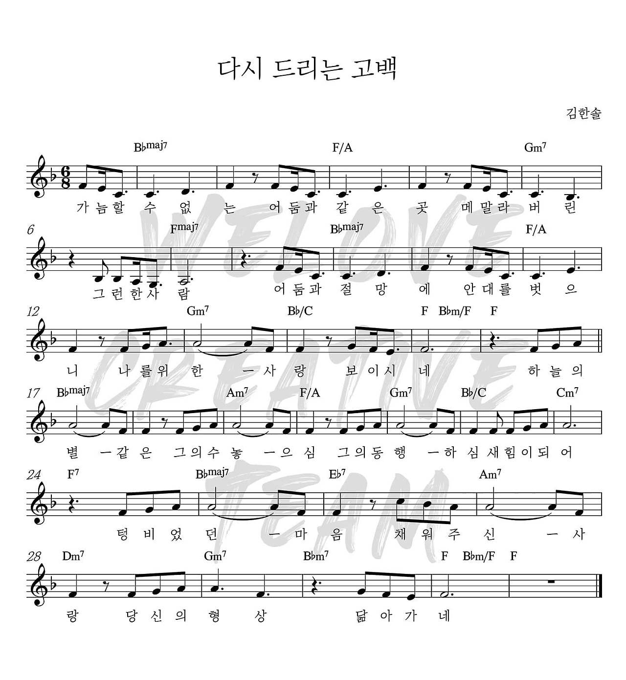 다시드리는 고백 - 악보,가사,영상 F KEY