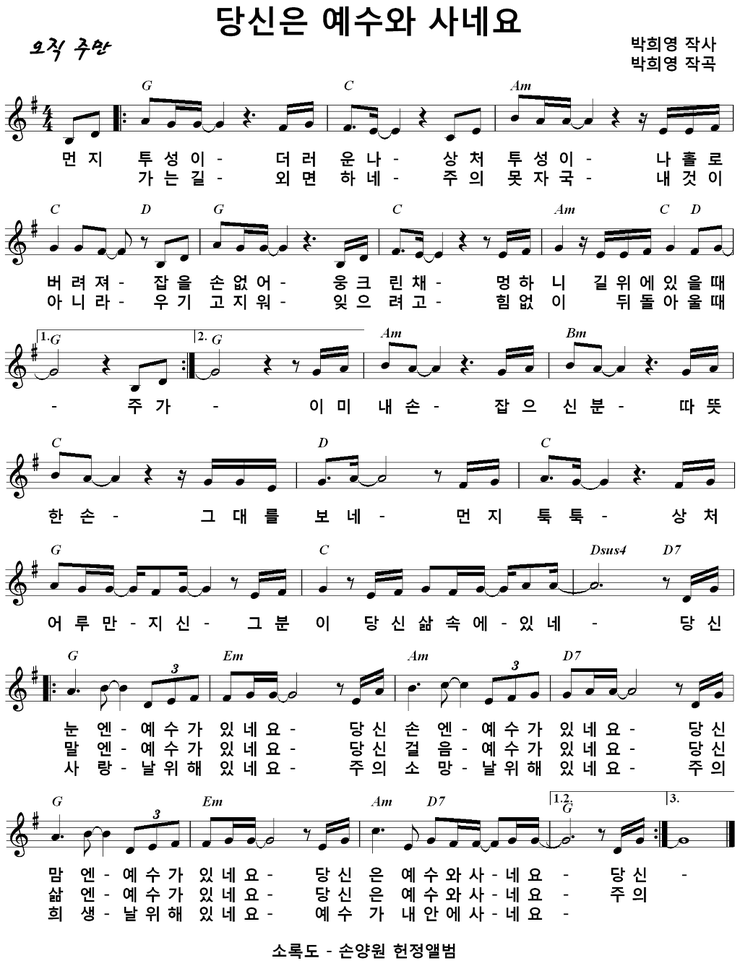 당신은예수와사네요 가사,악보,영상 - G KEY
