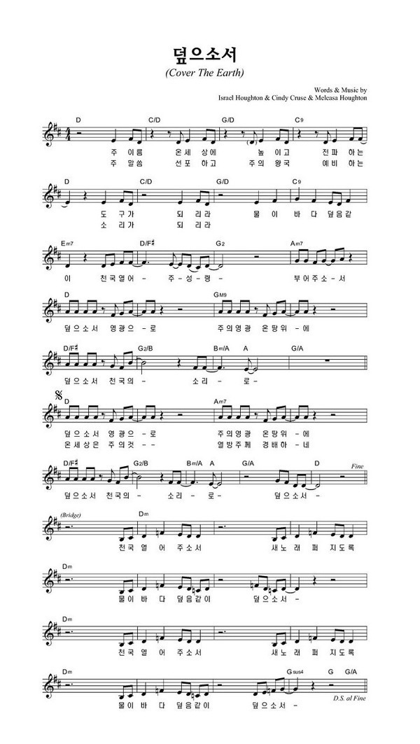 덮으소서 (Cover The Earth) - 악보,가사,영상 D KEY