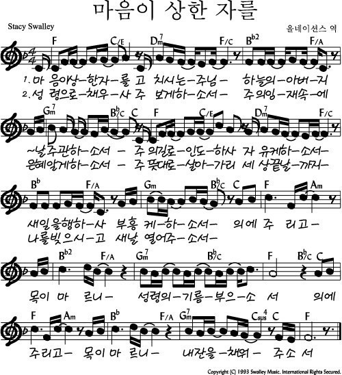 마음이 상한 자를 (악보/영상/가사) – F코드 찬양 | 회복과 기름부으심의 찬양