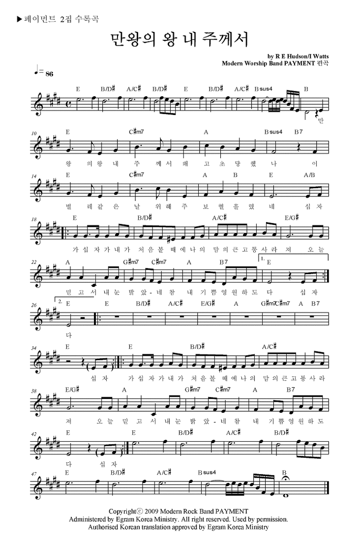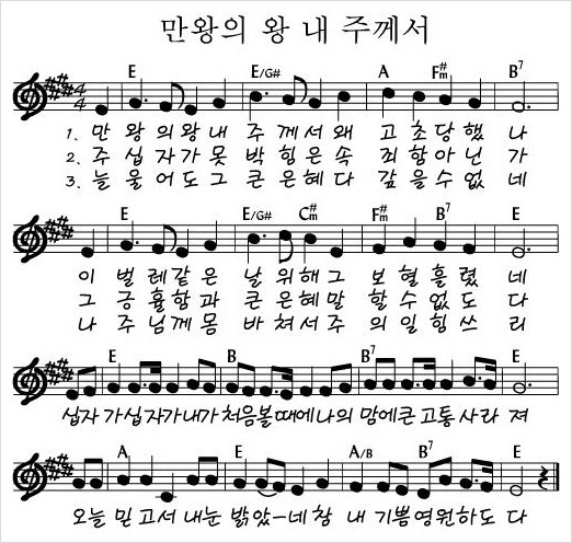 만왕의 왕 내 주께서 - 악보,가사,영상 E KEY