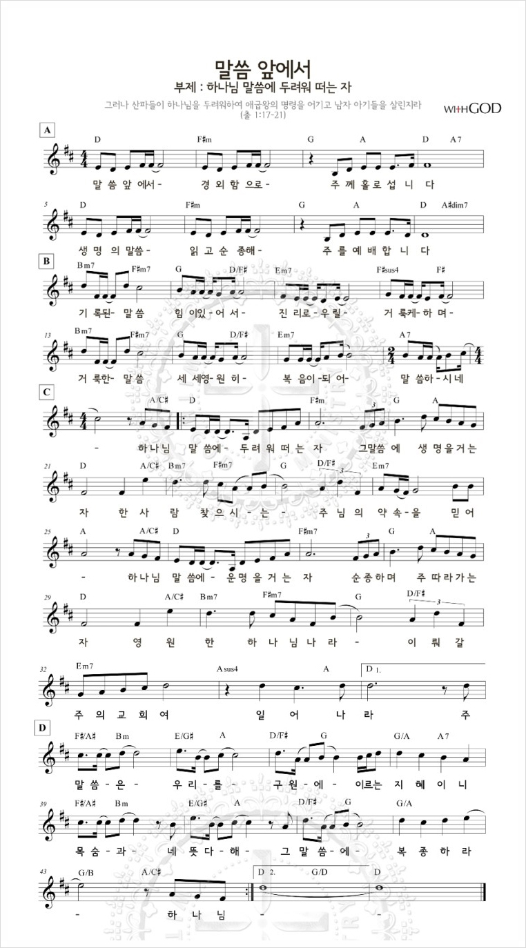 | 나를 만지시는 주님 앞에 - 악보,가사,영상 D KEY (0) | 2023.09.19 |
