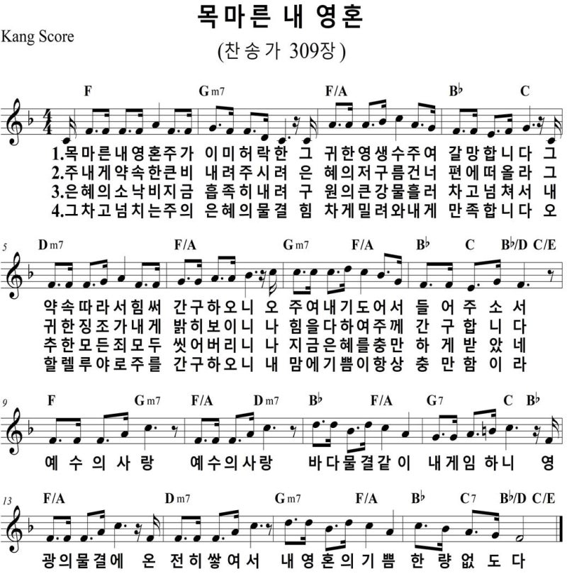 목마른 내 영혼 (악보/영상/가사) – F코드 찬양 | 은혜의 강물이 흐르는 찬양