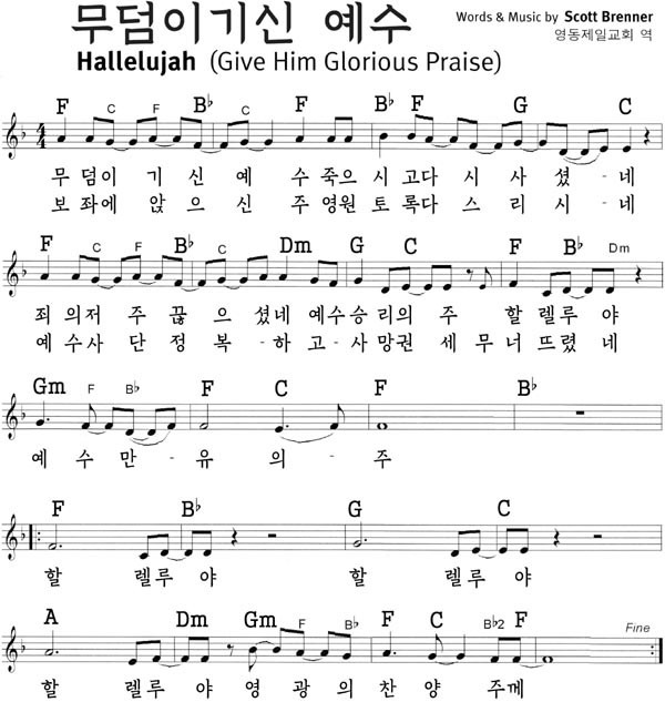 무덤 이기신 예수 (할렐루야) (악보/영상/가사) – 다윗의장막 & 예수전도단 | F코드 부활 찬양