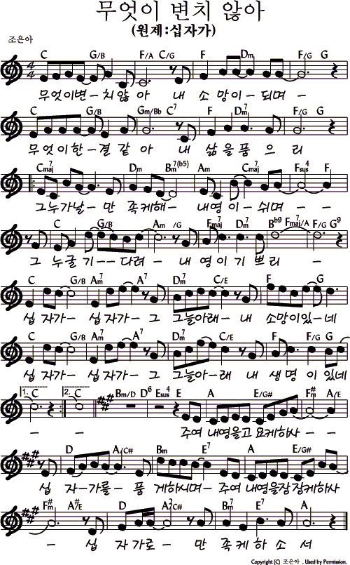 무엇이 변치 않아(십자가) - 악보,가사,영상 C KEY