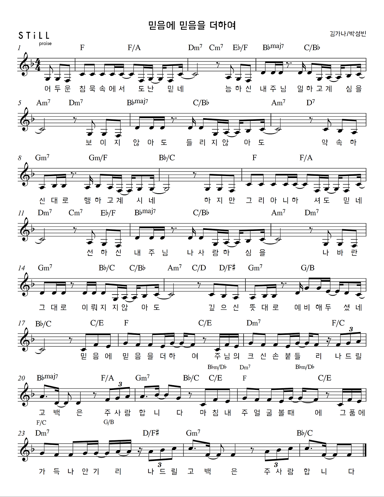 믿음에 믿음을 더하여 - 악보,가사,영상 F,G KEY