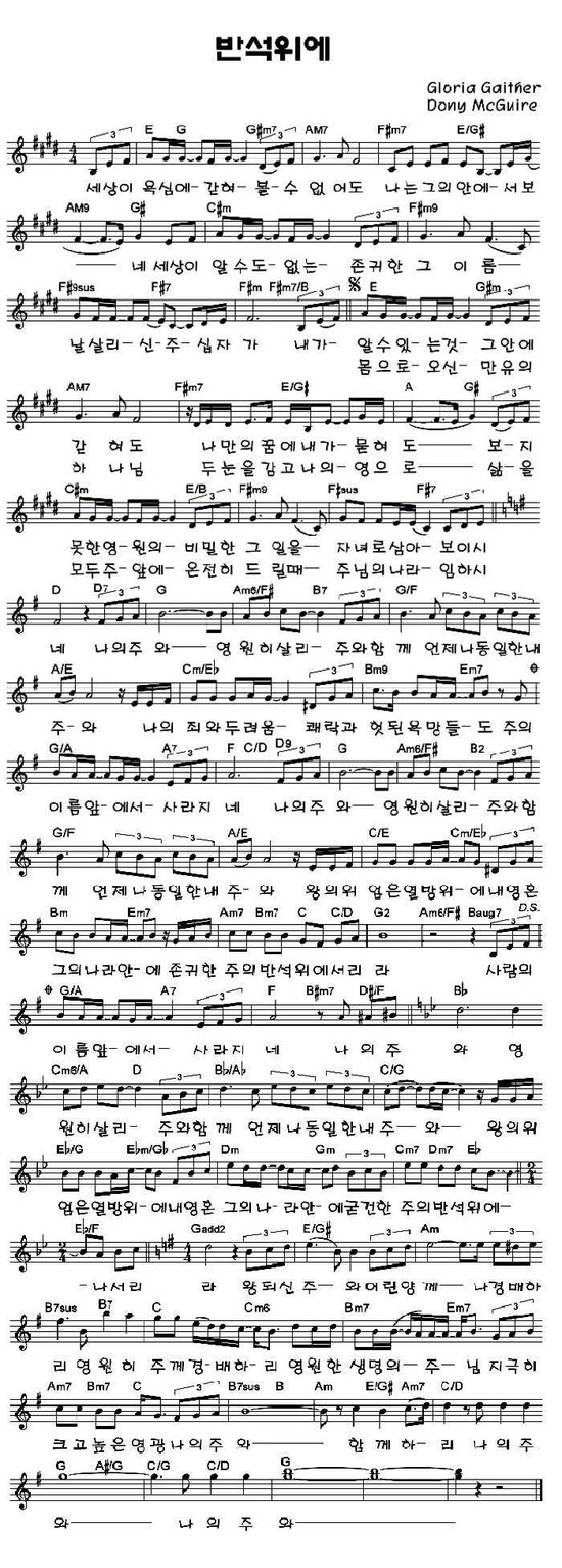반석 위에 - 악보,가사,영상 E KEY