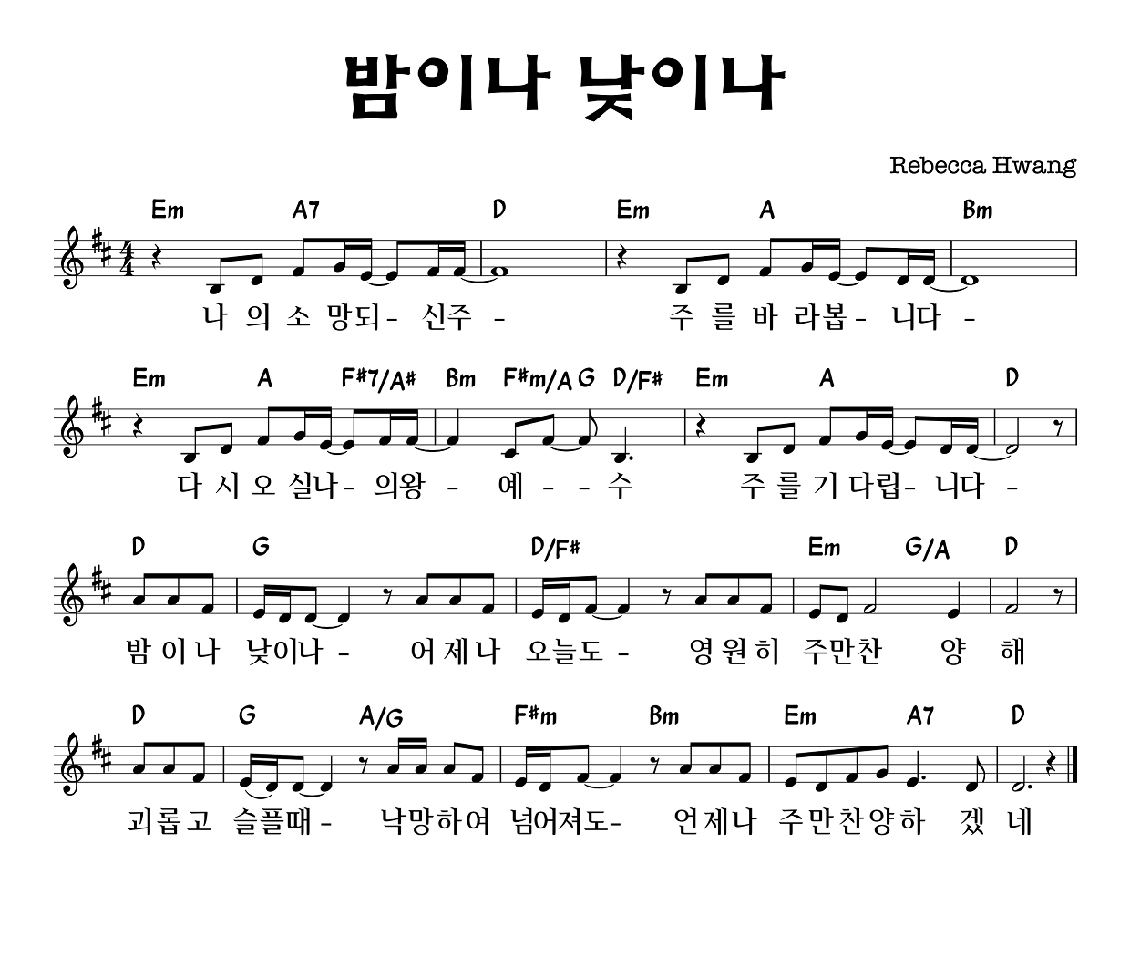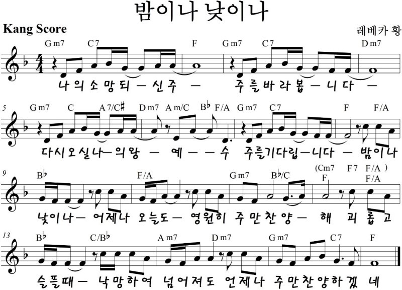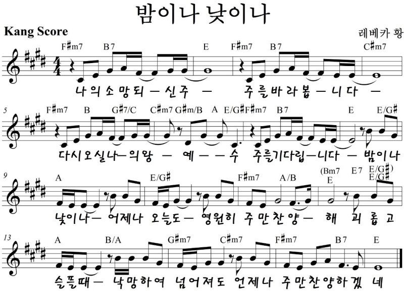 밤이나 낮이나 - 악보,가사,영상 D,E,F,G.A KEY