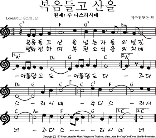 복음들고 산을(주다스리시네) - 악보,가사,영상 C KEY