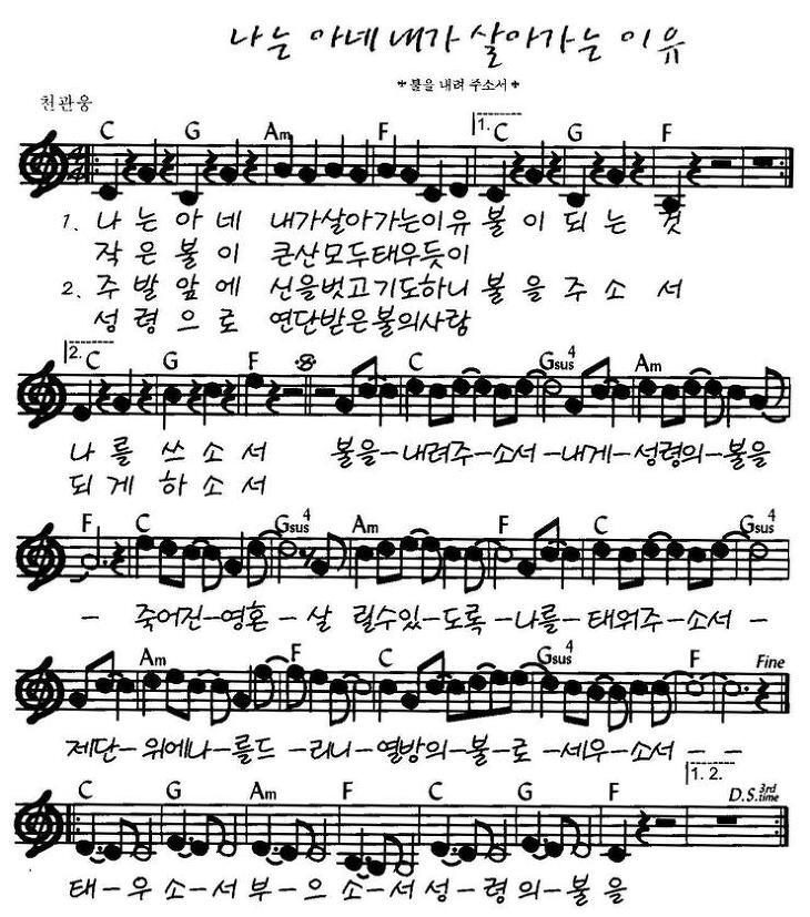 불을 내려주소서 - 악보,가사,영상 C KEY