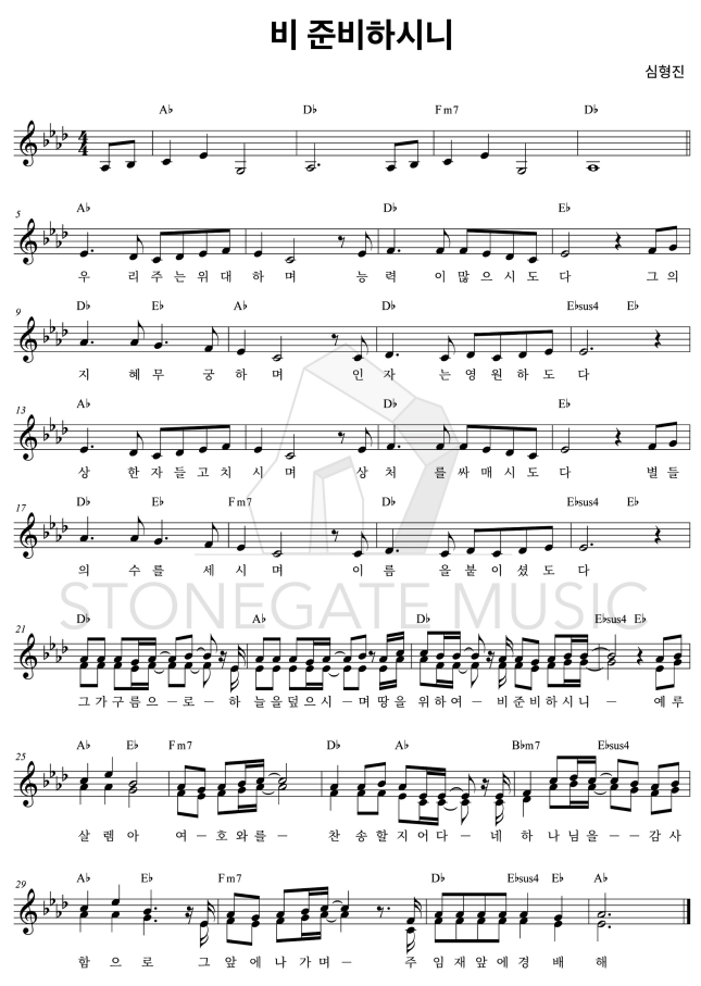비 준비하시니 - 악보,가사,영상 Ab KEY