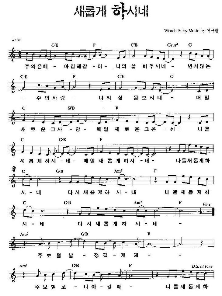 새롭게 하시네 (악보/영상/가사) – F코드 찬양 | 주 보혈로 매일 새로워지는 은혜