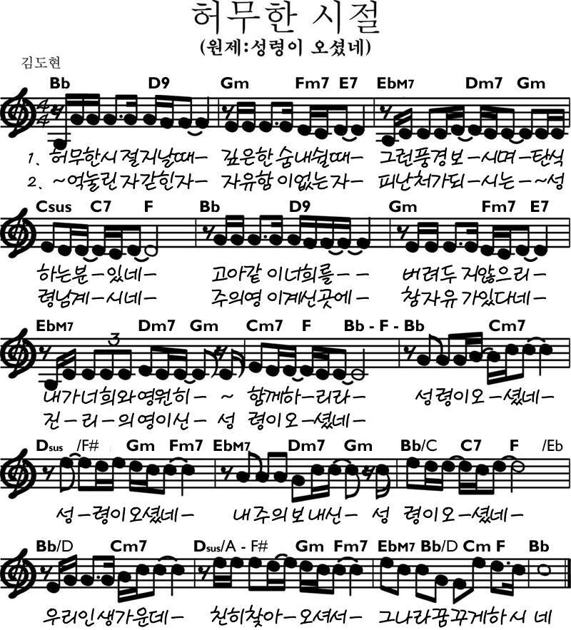 성령이 오셨네 ( 허무한 시절 )- 악보,가사,영상 Bb KEY