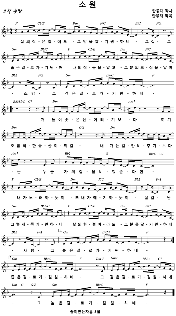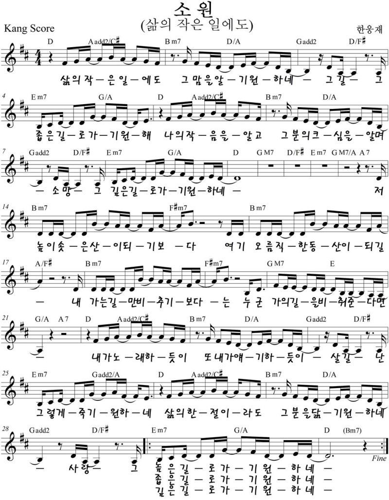 소원 (삶의 작은 일에도) - 악보,가사,영상 D,F KEY