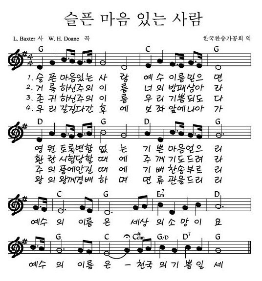 슬픈 마음 있는 사람 - 악보,가사,영상 F,G KEY