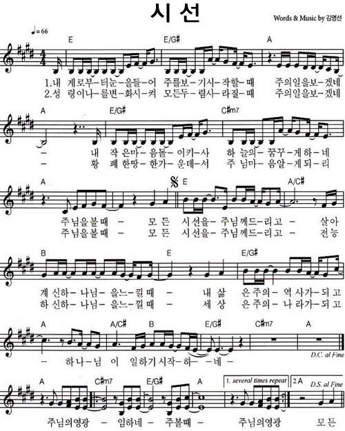 시선 - 악보,가사,영상 E KEY
