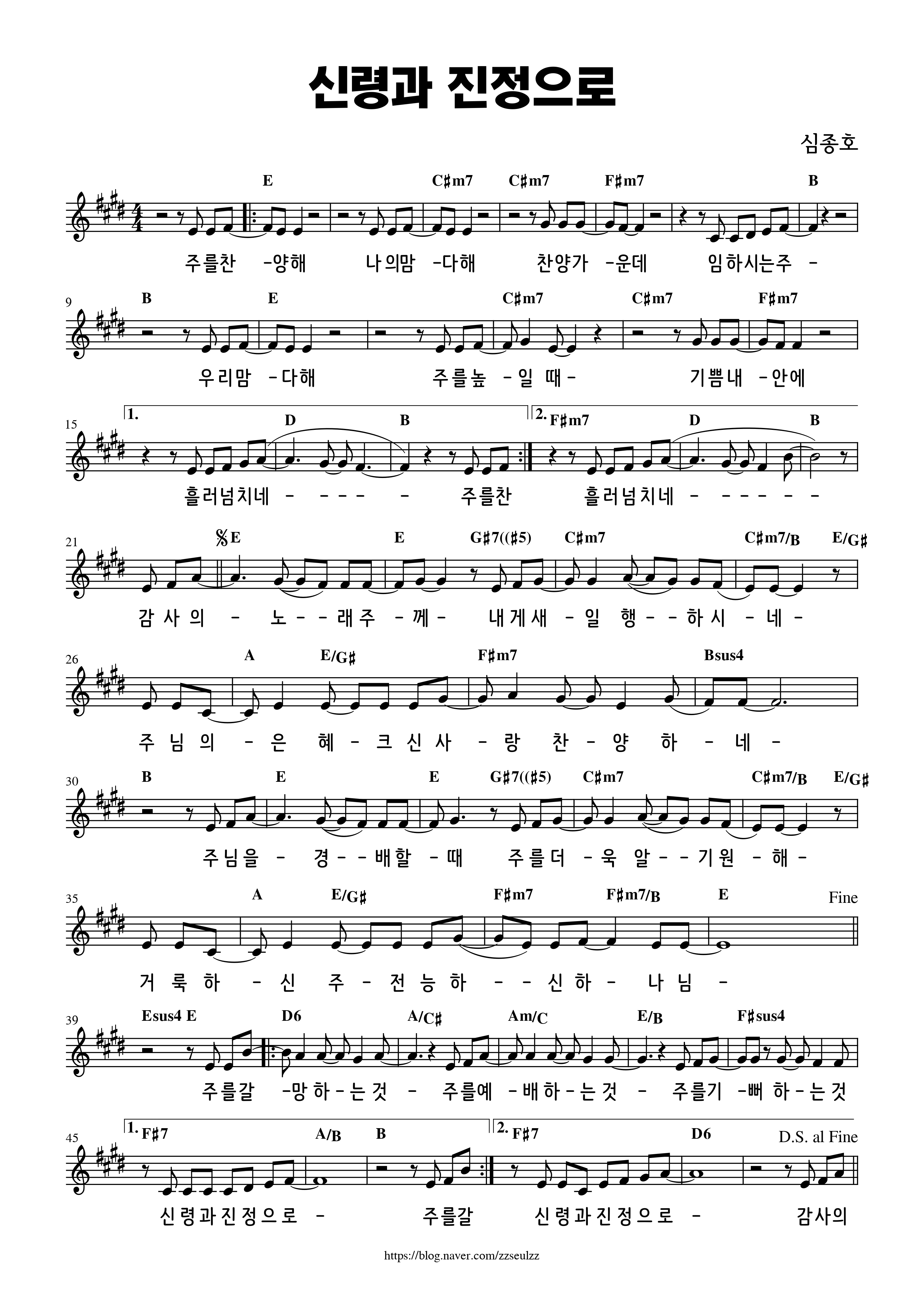 신령과 진정으로 - 악보,가사,영상 E KEY