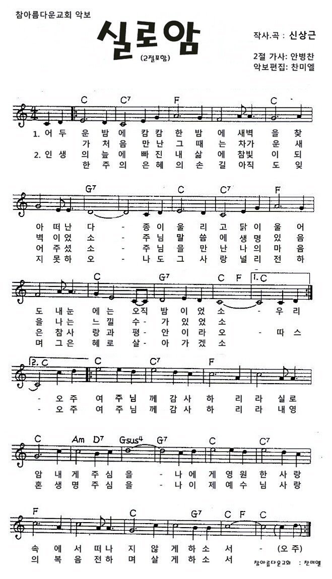 실로암 - 악보,가사,영상 C,G KEY
