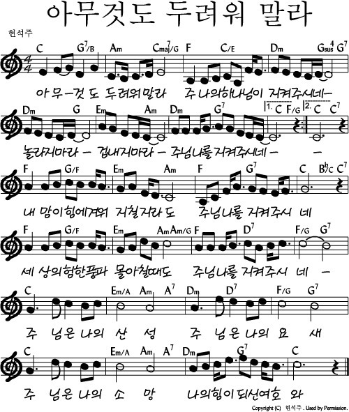 아무것도 두려워 말라 - 악보, 영상 ,가사 C KEY