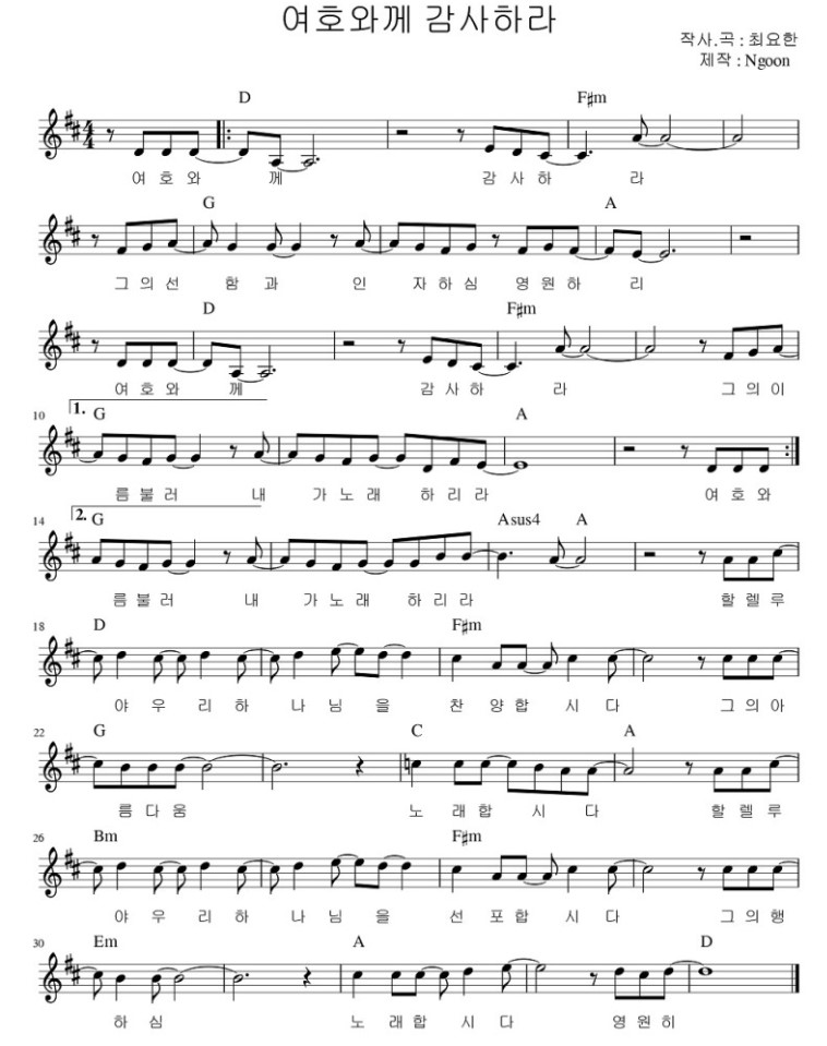 여호와께 감사하라 - 악보,가사,영상 D KEY