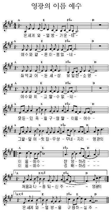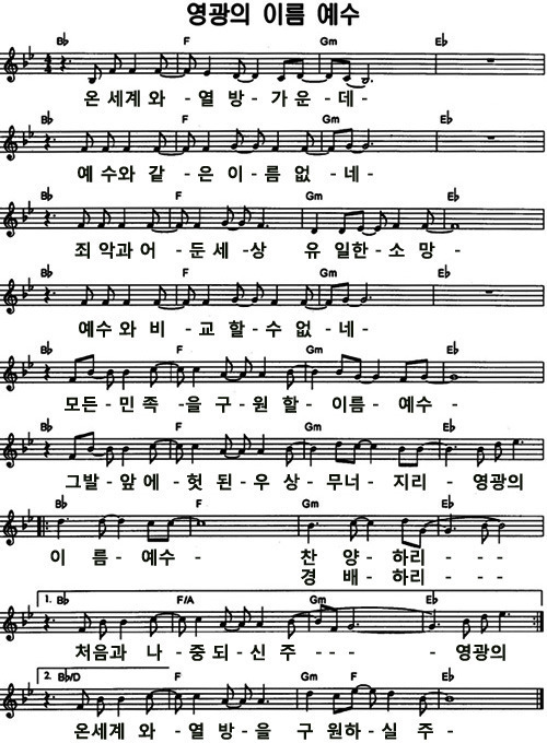 영광의 이름 예수( 온 세계와 열방 가운데 ) - 악보,가사,영상 Eb / D KEY