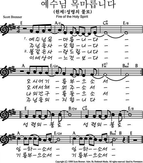 예수님 목마릅니다 ( 성령의 불로 ) - 악보,가사,영상 E KEY