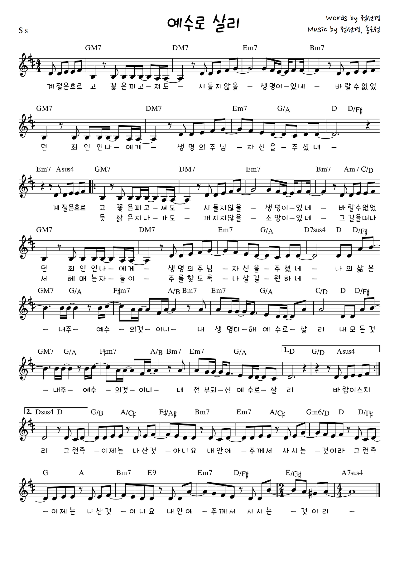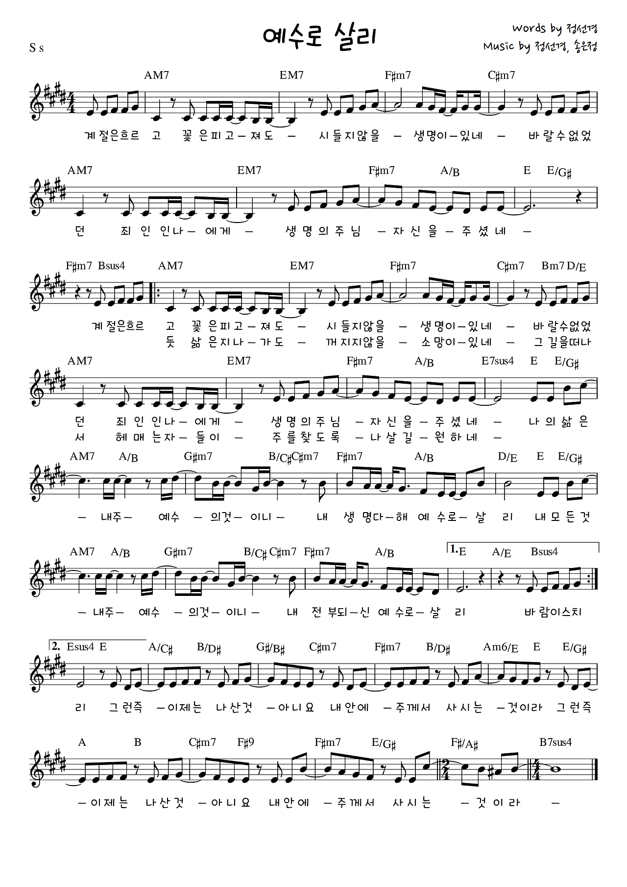 예수로 살리 - 악보,가사,영상 D, E, F KEY